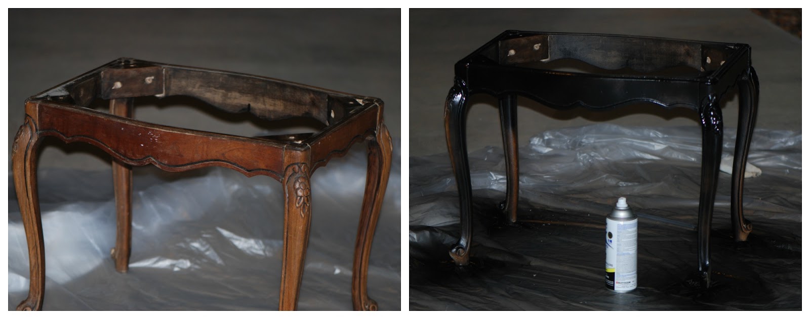 Paint Paint your piece. A primer may be needed depending on the paint you’re using and the condition of the piece. For this project I used spray paint that had a primer incorporated. It is always best to paint your piece outdoors or in your garage because of the paint fumes (and mess). Apply enough coats until there is a nice coverage.