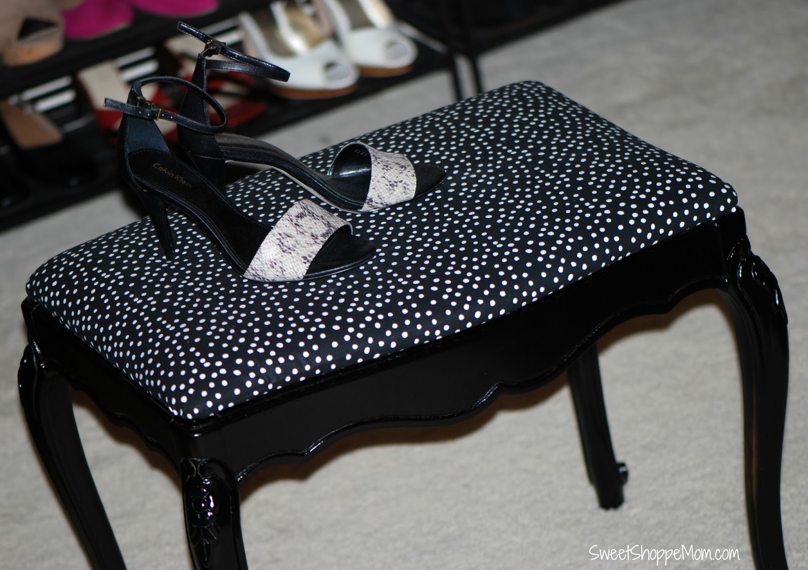 One of my current home projects is organizing and adding some style to my closet. I had found an old stool at a local thrift store and thought it would perfect as a small bench to use in my closet as a place to sit when putting on my shoes. Its compact size makes it easy to store when not in use. But it needed to be repaired and updated.