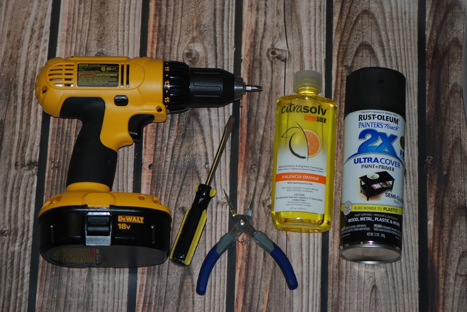 I picked up some fabric at my local craft store (spent less than $3!) and searched my garage for some paint to use. I decided to use a spray paint with primer so this made the project very simple.