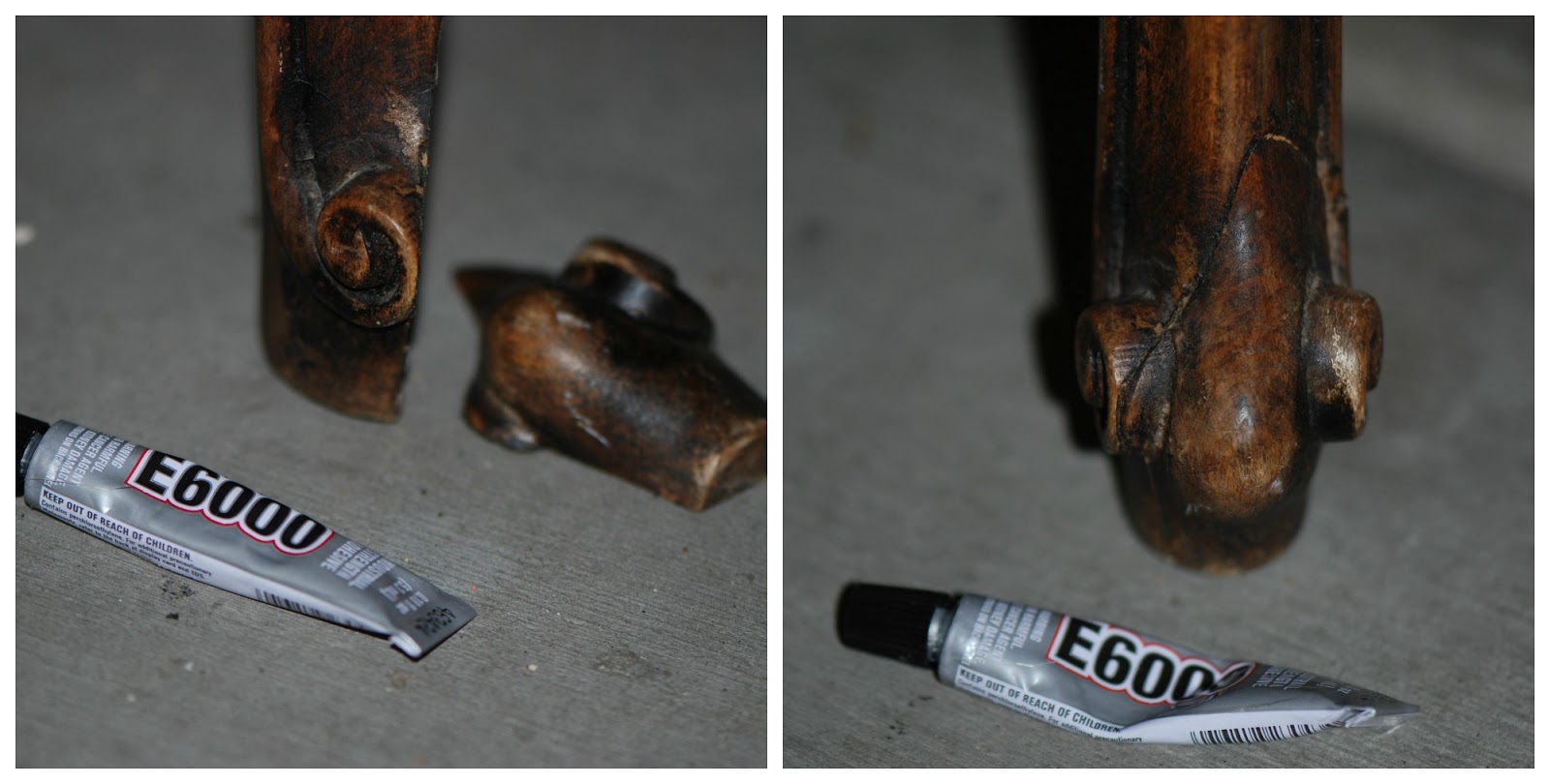 Repair Repair any damage to your piece and tighten all joints using glue or additional screws if needed. A piece of the foot of my stool had fallen off and I easily re-attached it with some glue. Clamp if necessary while drying.