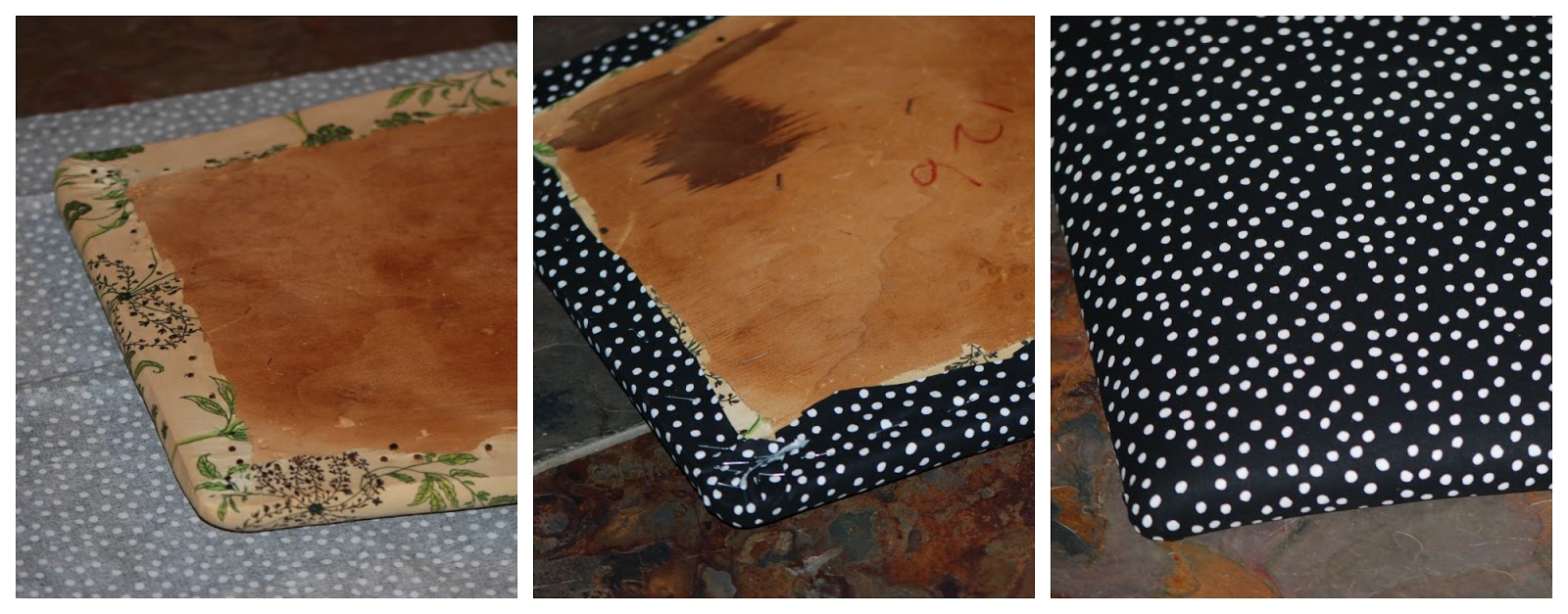 Reattach fabric covered board Once the paint is dry, reattached the fabric covered board with the saved screws.