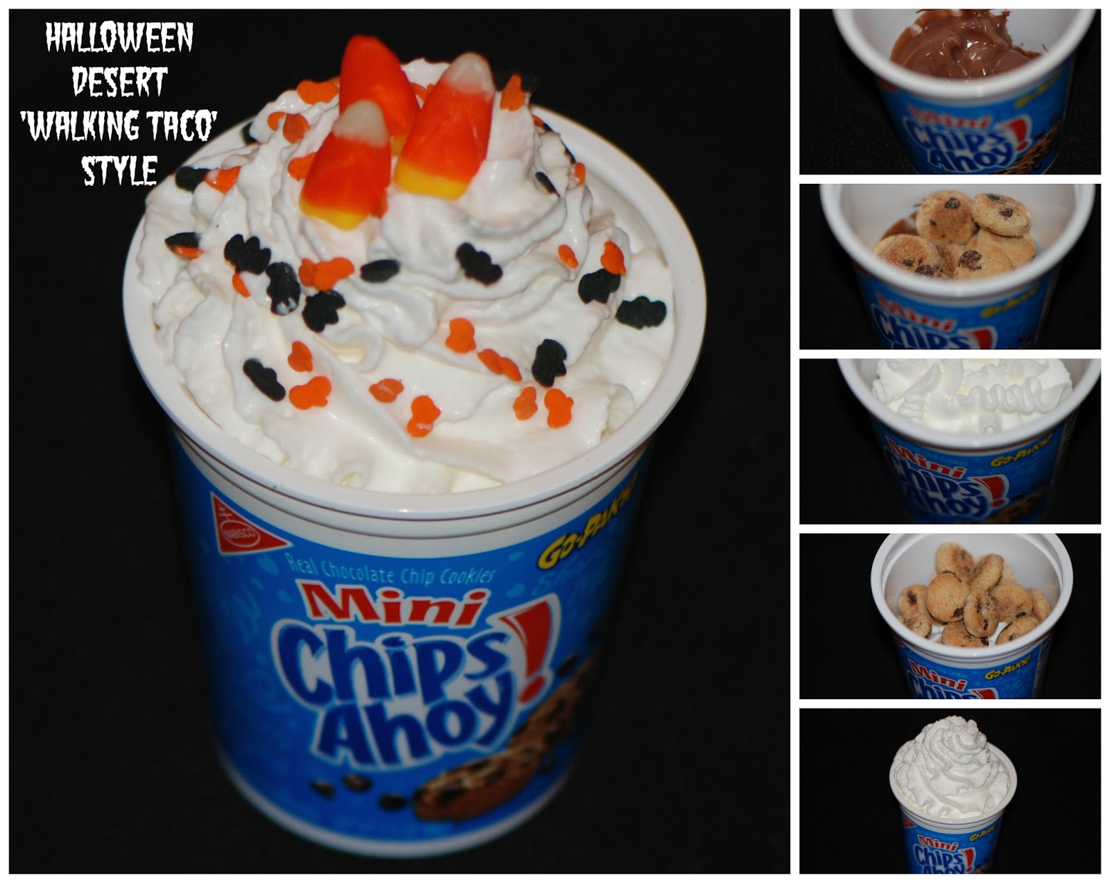 Getting in the Halloween mood, I decided to make these Halloween Cookie Parfaits for my son and neighborhood kids – a dessert version of a walking taco! Now that the evenings are cooler here in Arizona, all the kids gather in the street to ride bikes and scooters or play ball – I knew they’d love these sweet treats. The containers are plastic and don’t leak so perfect for outdoor snack while the kids are running around. Its a dessert version of a ‘walking taco’, so fun!
