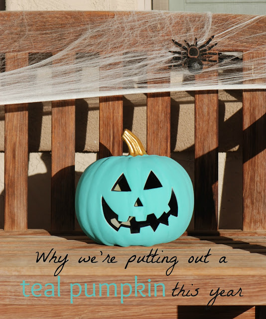 The Teal Pumpkin Project was created by FARE (Food Allergy Research & Education) to help raise awareness of food allergies and promotes have non-food treats so that all kids are involved in the trick or treat festivities.