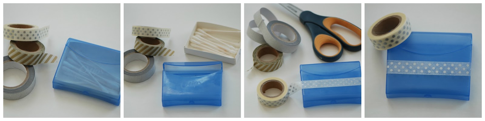 Small containers can be hard to find. Sometimes the perfect container is an empty container found around the house – repurposing may the perfect solution (and saves money). The travel cotton swab container is a perfect mini container that can be repurposed – remove the cardboard insert and the outer stick. Add some decorative tape for fun.