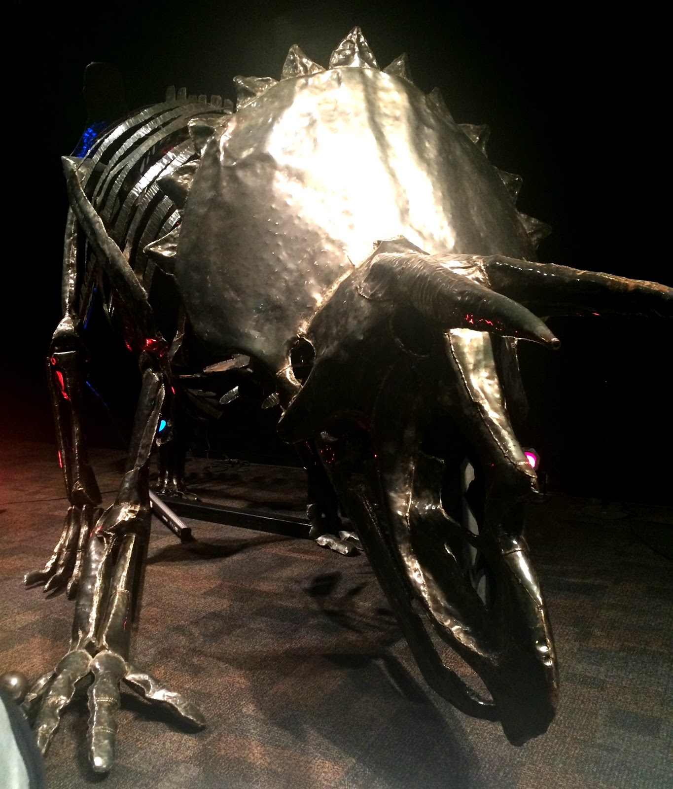 Dinosaurs in Motion includes 14 life-sized sculptures of dinosaurs and related species. These sculptures were created by North Carolina artist John Payne and are made from recycled materials. The really cool part of these sculptures is that they move and not only that, you can control them through levers and video game controllers.