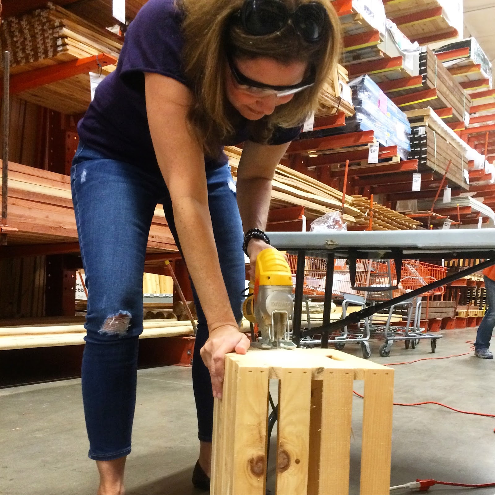I’m always up for Girls Nights Out so when a girlfriend invited me to Home Depot’s Do-it Herself Workshop I said YES. Hanging out with girlfriends, creating something and learning some new skills. Home Depot host this event in their stores with a new project each month. Some stores run it hands-on style and others as a demo. March’s project was a vegetable stand and I thought it would be perfect to use on my patio for my herb and vegetable pots. It would also be a great vegetable stand for my pantry if I had more floor space.
